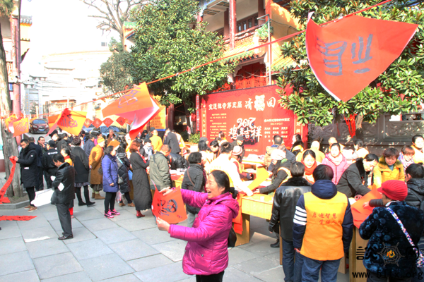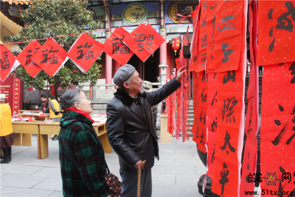 一大早从积玉桥乘车赶来的常老先生夫妇今年请了两幅对联。他介绍说,自己从第一届活动起,便每年到宝通禅寺请“福”。身边很多亲戚朋友也在他的介绍下,成了请“福”回家活动的熟面孔。他表示,宝通禅寺举办请“福”回家活动,不仅是对传统文化、佛教文化的传承和弘扬,更体现了佛教慈悲济世、广度众生的精神。