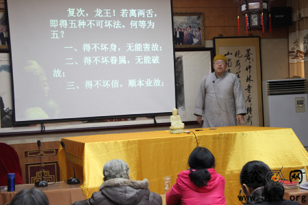 纯善法师为信众开示离“两舌”可得的五种不可坏法