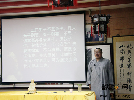 纯善法师引用莲池大师所写《戒杀文》为信众开示