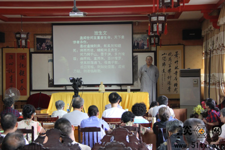 纯善法师为信众讲解《放生文》