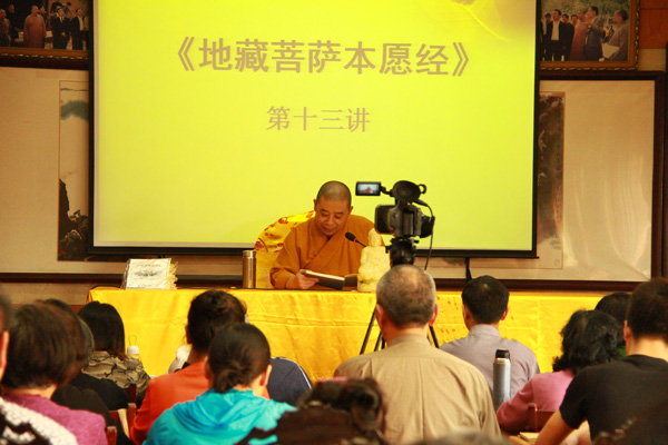 2015年5月3日(农历三月十五),武汉宝通禅寺于每周日在《谈心》编辑部二楼举办的《谈心》杂志学佛讲座礼请宝通禅寺方丈隆醒大和尚为信众开示《地藏菩萨本愿经》第十三讲。本次隆醒大和尚继续为信众讲解《阎浮众生业感品第四》。