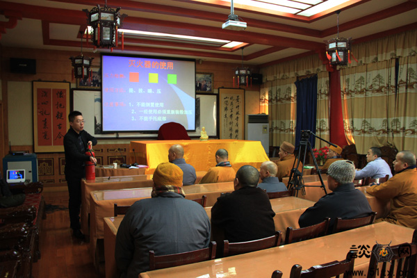 2016年1月14日下午,武汉宝通禅寺“2016年消防知识培训讲座”在宝通禅寺《谈心》编辑部二楼举行,由湖北省消防协会防止火灾安全技术中心的孙健老师主讲,宝通禅寺常住法师30多人到场学习消防安全知识。