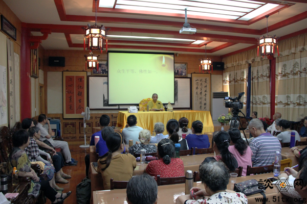 下午2:20,宝通禅寺《谈心》编辑部二楼学佛讲座现场,百余位来自武汉三镇及周边地区的善信起身合掌,恭请隆醒大和尚慈悲开示。一个多小时的开示讲座,讲堂内秩序井然、法喜充满,隆醒大和尚应机施教、循循善诱,在场善信聚精会神、边听边记。