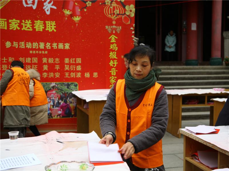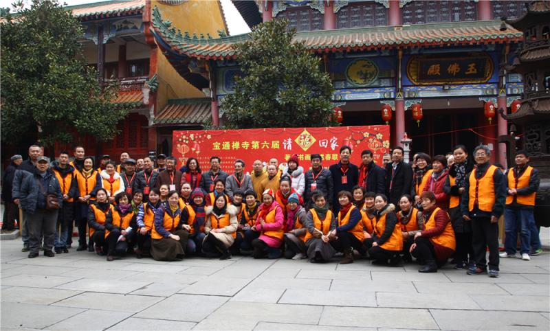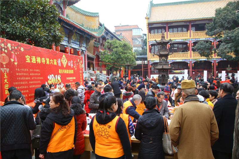 活动特邀乔士和、刘建国、黄毅志、姜红园、陈登远、黄平、费保龙、黄汉高、李洪安、王剑波、杨思等十余位江城书画名家现场为信众书写春联、福字,送上新年祝福,数十位热心义工自发前来为现场活动服务,市民、善信三五相约到宝通禅寺请“福”回家。