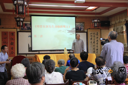 2015年8月2日(农历六月十八),武汉宝通禅寺于每周日举办的《谈心》杂志学佛讲座礼请纯善法师为信众开示《明管东溟先生劝修阴骘文》第三讲。下午2:20,纯善法师来到《谈心》编辑部二楼学佛讲座现场为等候多时的信众开示佛法。