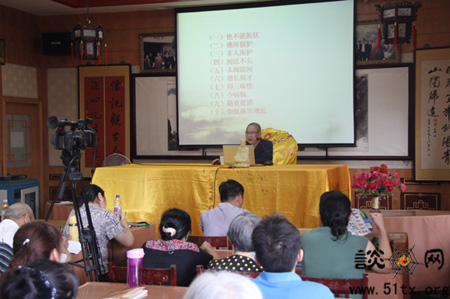 2015年8月23日(农历七月初十),武汉宝通禅寺于每周日举办的《谈心》杂志学佛讲座如期开讲。本期由法晗法师为信众开示《百喻经》第十四讲。下午2:20,法晗法师来到《谈心》编辑部二楼学佛讲座现场为信众开示佛法。