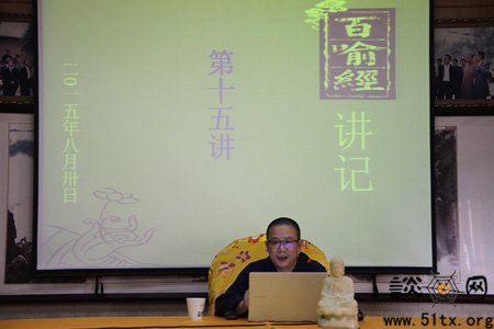 2015年8月30日(农历七月十七),武汉宝通禅寺于每周日举办的《谈心》杂志学佛讲座礼请法晗法师为信众开示《百喻经》第十五讲。下午2:20,法晗法师来到《谈心》编辑部二楼学佛讲座现场为等候多时的信众开示佛法。