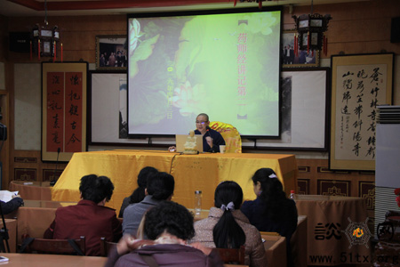 2016年4月3日(农历二月二十六),武汉宝通禅寺《谈心》杂志学佛讲座本周日继续礼请法晗法师为信众开示佛法,法晗法师本期为信众开示的是《药师琉璃光如来本愿功德经》第二讲。下午2:20,法晗法师来到《谈心》编辑部二楼学佛讲座现场为等候多时的信众开示佛法。