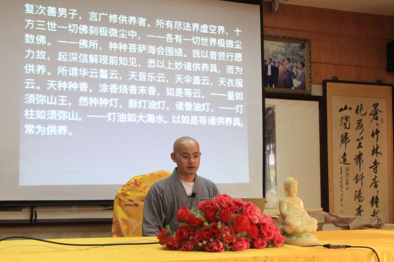 9月23日,能恩法师应善信礼请,继续在《谈心》杂志“学佛讲座”开示《普贤行愿品》,百余位善信聆听法音。