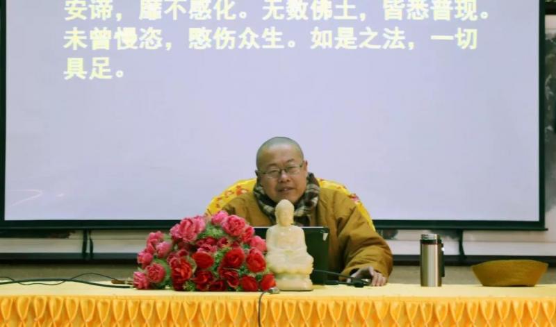 纯善法师此次继续重点就在家人如何处理好家庭关系作出开示:他结合数篇讲述家庭亲情的文章展开本次开示,以便在场大众利于理解与接受。