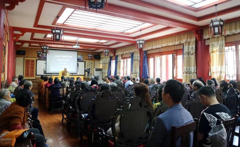讲座结束,能恩法师领众回向,在座听众起立合掌恭送法师。