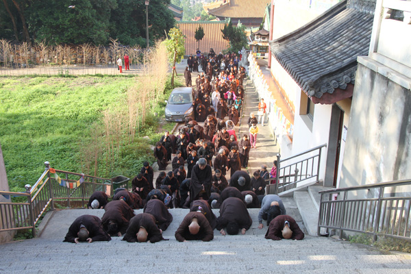 本次将举行的是宝通禅寺第五届拜塔活动。去年拜塔有福胜法师、演洪法师、常佑法师、德斌法师、能定法师等在前带队,率宝通禅寺僧侣及数千信众自山门始,沿寺院大道三步一拜至洪山宝塔。历时1个多小时,僧众皆步履整齐,款款深拜。一些年逾花甲的老居士,亦坚持三步一拜,虽汗湿衣襟,仍不改初衷。场面庄重祥和,虔诚之至,感人至深。