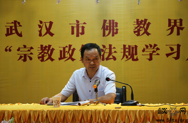 下午1时,学习活动继续展开,市佛协常务副会长能利法师在讲授《遵守国家的政策法规,努力为社会作贡献》中强调,在学习宗教政策法规中,首先要充分认识宗教政策法规学习的重要性和必要性,其次要明确宗教政策法规学习的指导思想和目标内容,他指出,宗教教职人员首先是一名公民,要培养自己的国家意识和公民意识,做到爱国爱教。授课中,能利法师鼓励与会人员积极学法,灵活运用,形成自觉学法、守法、用法的良好氛围。