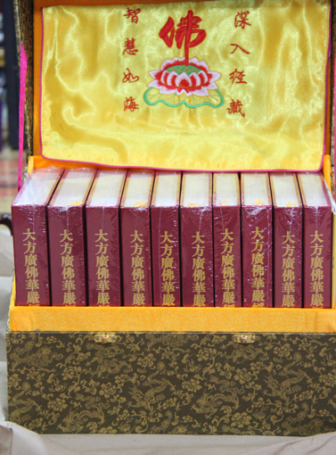 宝通禅寺于2011年下半年印刷了精装本华严经,此精装本华严经共十本,每本封皮都是精装,外有一个箱子装纳。为了让法宝更好地流通,以利益广大众生,现在以成本价流通。如果欲请华严经的,请电话:027-51817289;02787741539或者QQ:100124336联系。