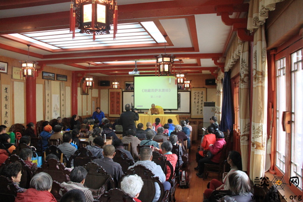 因缘殊胜,众妙和合。讲座开始前,座无虚席的学佛讲堂内,许多居士手捧《谈心》认真阅读。有的居士边阅读边做阅读笔记,有的居士之间则彼此分享阅读隆醒大和尚《地藏菩萨本愿经》浅析系列文章的心得体会。为保证讲座期间的秩序,大家彼此之间相互提醒,将手机调成静音或关闭状态。
