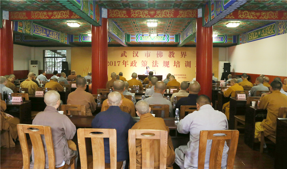 9月22日,武汉佛教界2017年政策法规培训班在宝通禅寺举办。市佛教协会会长、宝通禅寺方丈隆醒大和尚主持并作总结发言。市民宗委二处处长胡中秋出席并讲话。市佛教协会副秘书长以上人员,市内各寺院负责人,中心城区及新洲区、黄陂区、江夏区僧尼代表近百人参加培训。[详细]